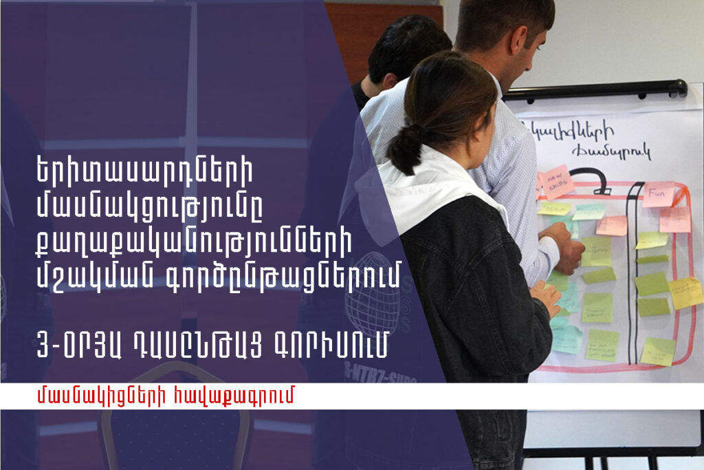 «Դիլիջանի երիտասարդների համագործակցության կենտրոն» հասարակական կազմակերպությունը «Տվյալներ հաշվետու և թափանցիկ գործունեության համար(ԴԱՏԱ)» ծրագրի շրջանակում հայտարարում է «Երիտասարդների մասնակցությունը քաղաքականությունների մշակման գործընթացներում» եռօրյա դասընթացի մասնակիցների հավաքագրում: Դասընթացը նախատեսված է ս․թ․ նոյեմբերի 5-7-ը` դեմ առ դեմ…